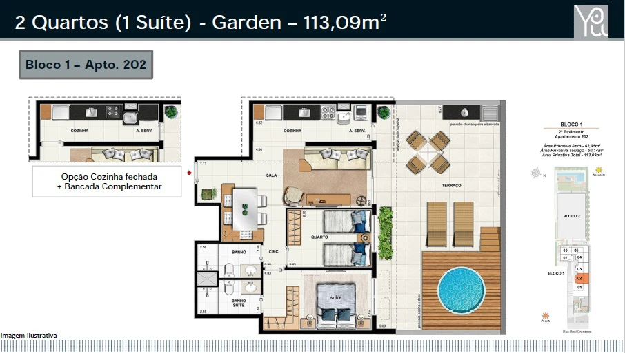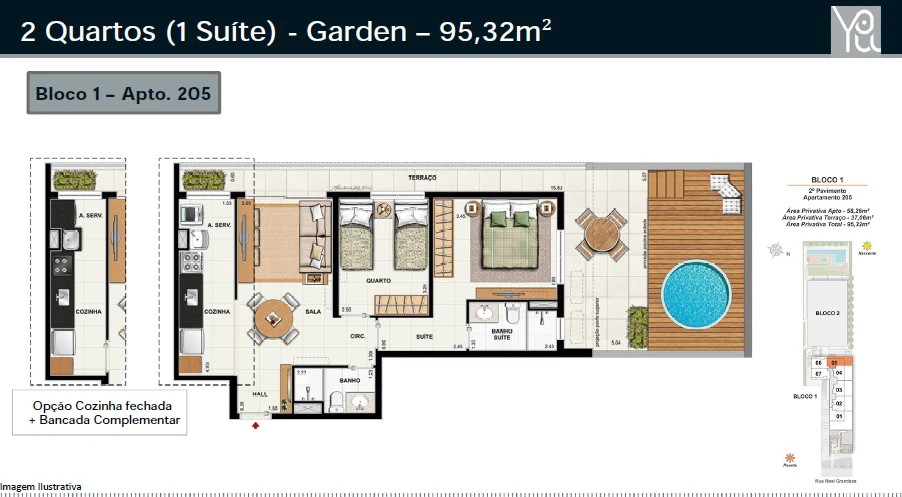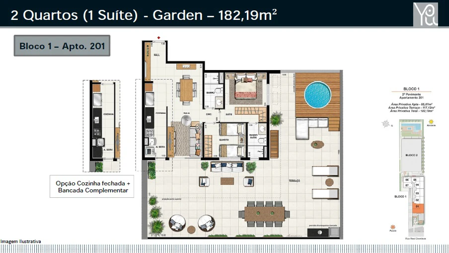 Apartamentos de 2 Quartos Garden – de 95m² à 182m².