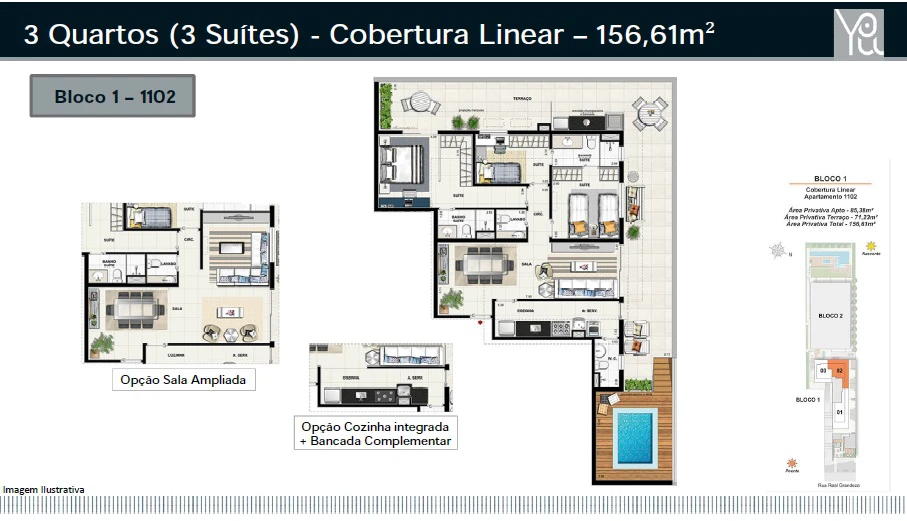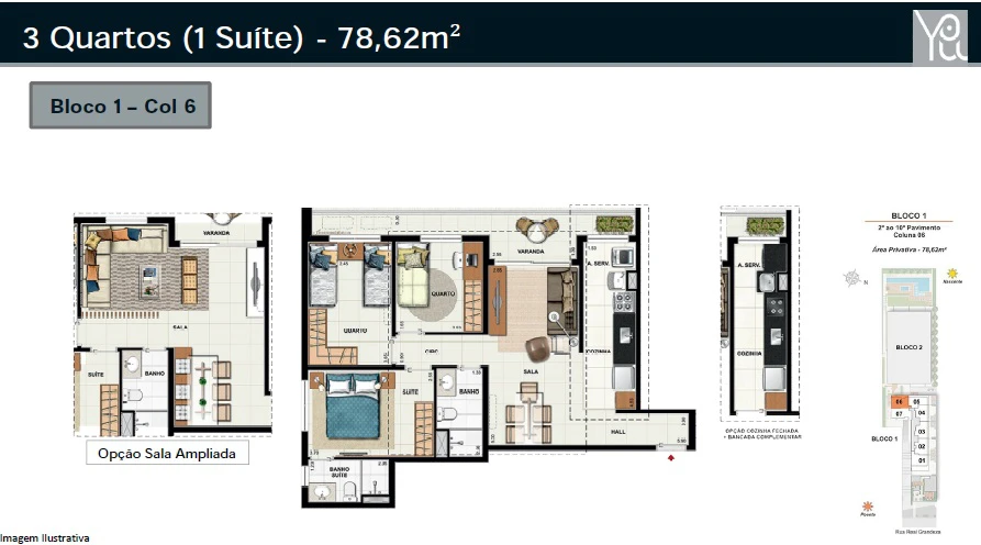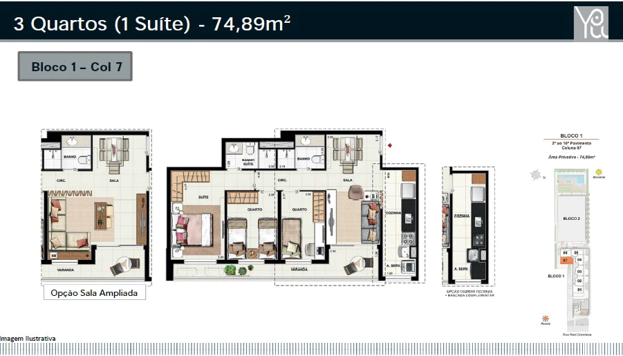 Apartamentos de 3 Quartos de 74m² até 78m².